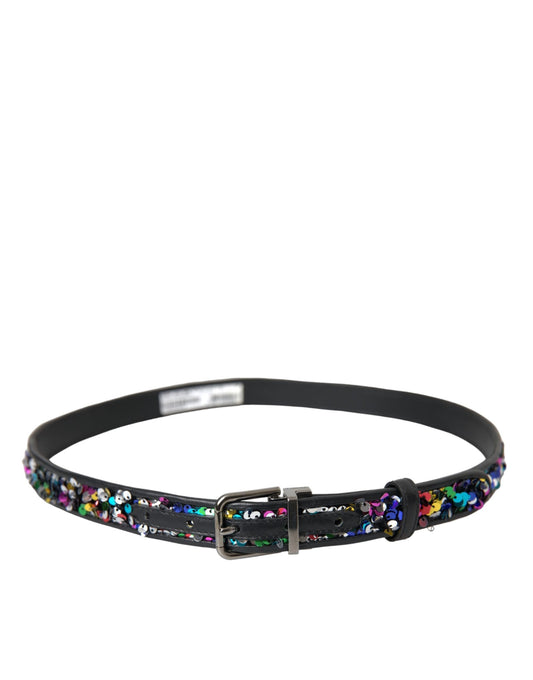 Dolce & Gabbana Black Sequined Silver Metal Buckle Women Belt