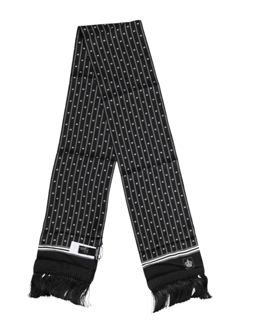 Dolce & Gabbana Black Silk Printed Fringes Men Foulard Scarf