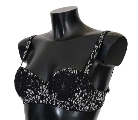Dolce & Gabbana Black Silk White Lace Stretch Underwear Bra