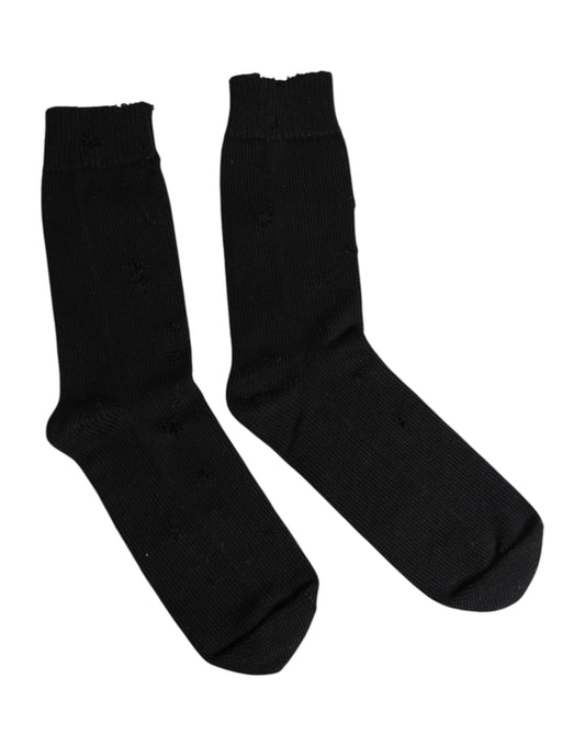 Dolce & Gabbana Black Solid Stretch Mid Calf Men Socks