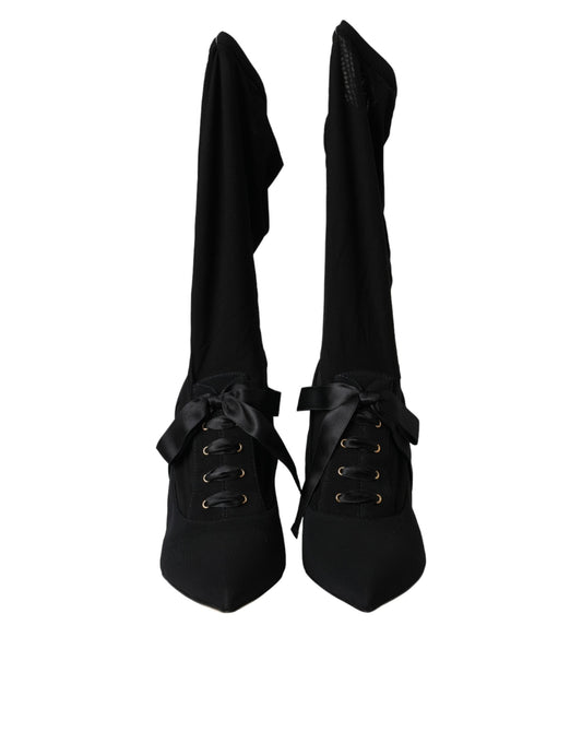 Dolce & Gabbana Black Stiletto Heels Lace Up Boots Shoes