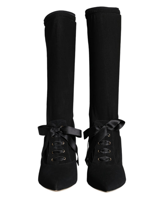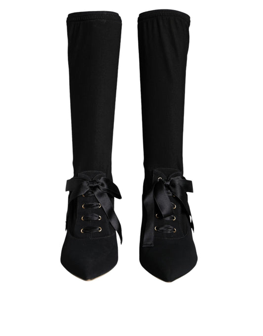 Dolce & Gabbana Black Stiletto Heels Mid Calf Boots Shoes