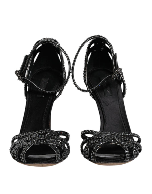 Dolce & Gabbana Black Strass Ankle Strap Heels Sandals Shoes