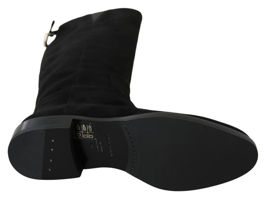 Dolce & Gabbana Black Suede Leather Mid Calf Boots Shoes