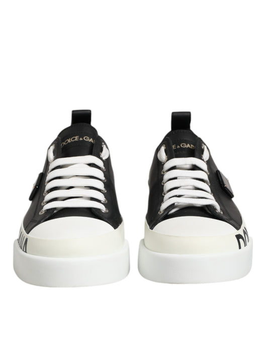 Dolce & Gabbana Black White Leather Low Top Sneakers Shoes