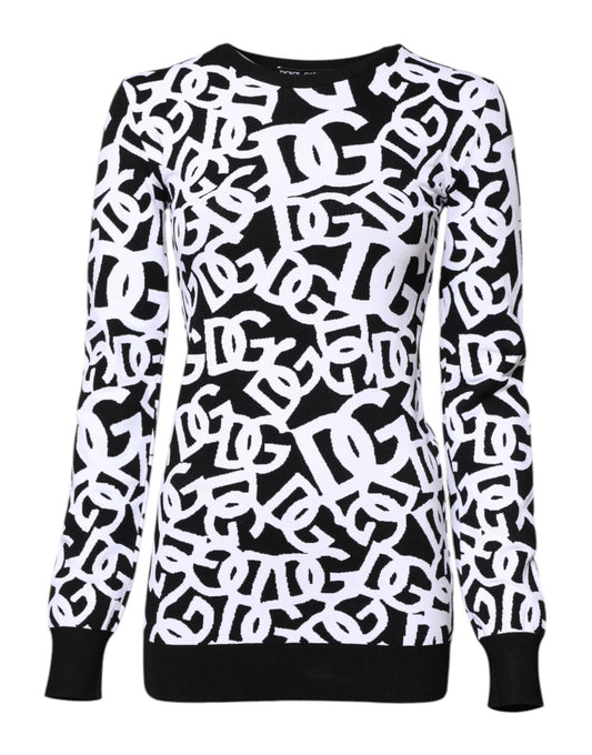 Dolce & Gabbana Black White Logo Print Wool Pullover Sweater