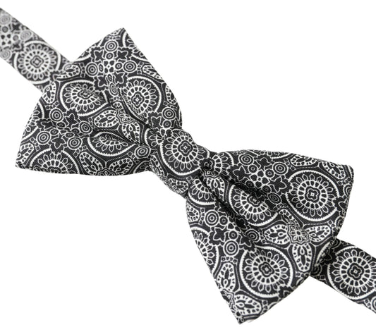 Dolce & Gabbana Black White Pattern Adjustable Neck Papillon Bow Tie