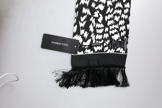 Dolce & Gabbana Black White Patterned Fringes Shawl Scarf
