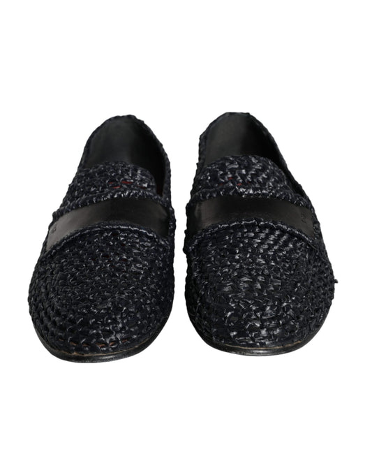 Dolce & Gabbana Black Woven Raffia Slip On Loafers Men Shoes