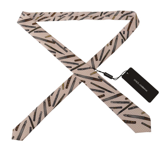 Dolce & Gabbana Pink Pen Dots Print 100% Silk Adjustable Neck Accessory Tie