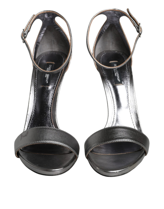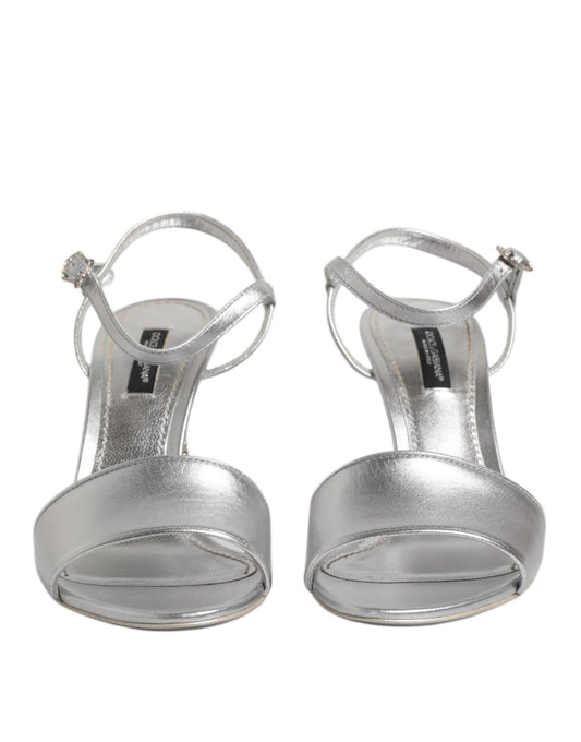 Dolce & Gabbana Silver Keira Leather Heels Sandals Shoes