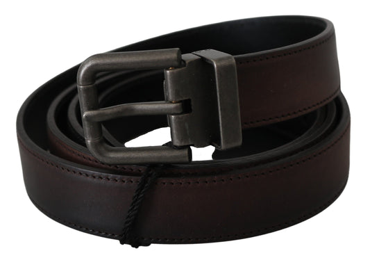 Dolce & Gabbana Solid Brown Leather Gray Buckle Belt