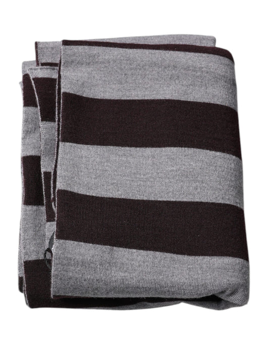 Dolce & Gabbana Black Gray Stripes Wool Neck Wrap Scarf