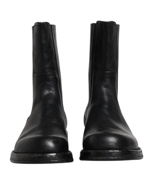 Dolce & Gabbana Black Horse Leather Mid Calf Boots Shoes
