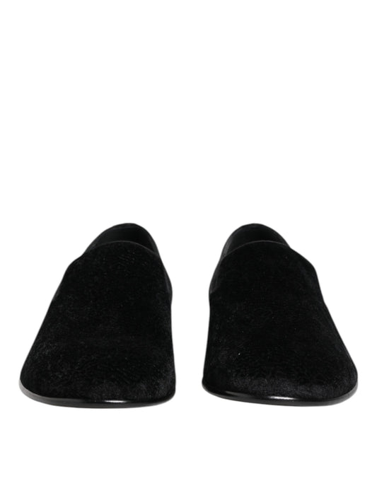 Dolce & Gabbana Black Jacquard Polyester Slip On Loafers Shoes