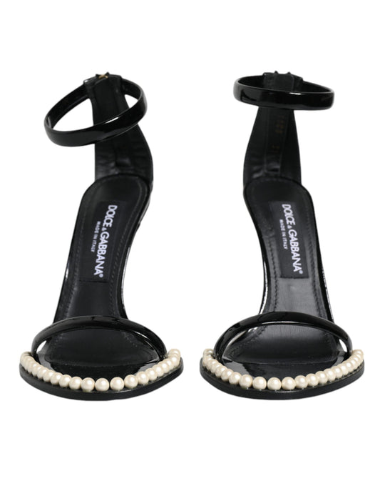 Dolce & Gabbana Black Keira Leather Faux Pearl Sandals Heels Shoes
