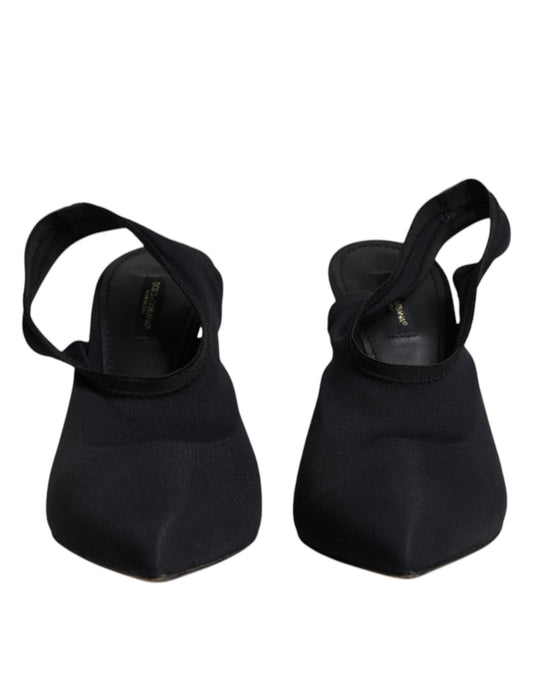 Dolce & Gabbana Black Jersey Stretch Heels Slingback Shoes