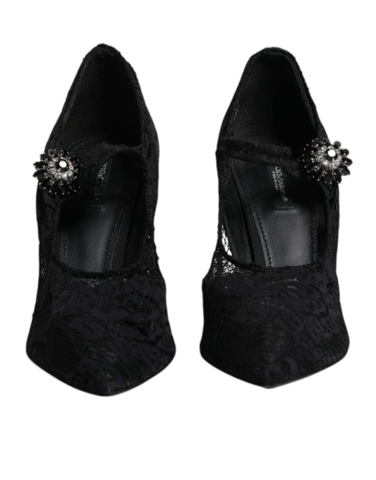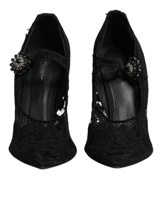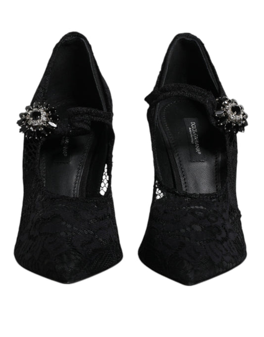Dolce & Gabbana Black Lace Crystals Mary Jane Pumps Shoes