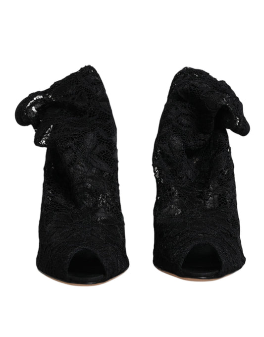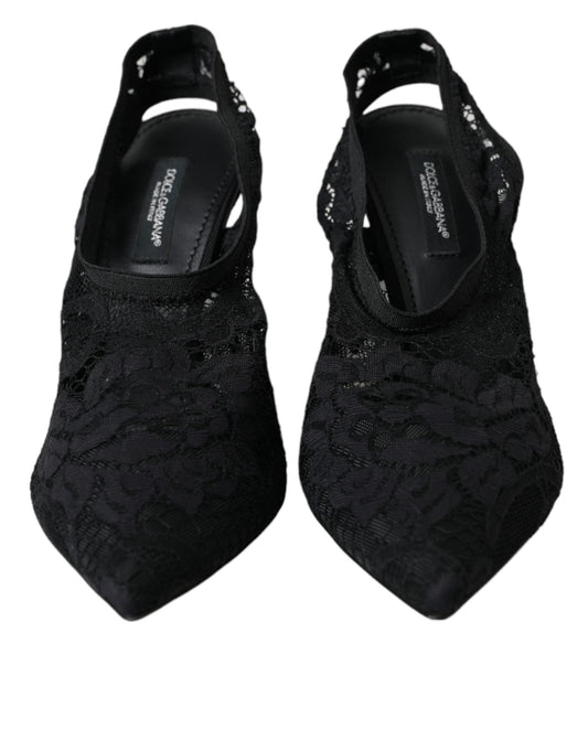Dolce & Gabbana Black Lace Stretch Heels Slingbacks Shoes