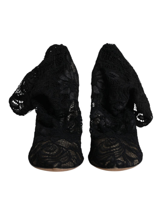 Dolce & Gabbana Black Lace Stretch Heels Mid Calf Boot Shoes