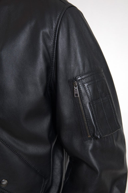Dolce & Gabbana Black Leather Blouson Full Zip Bomber Jacket