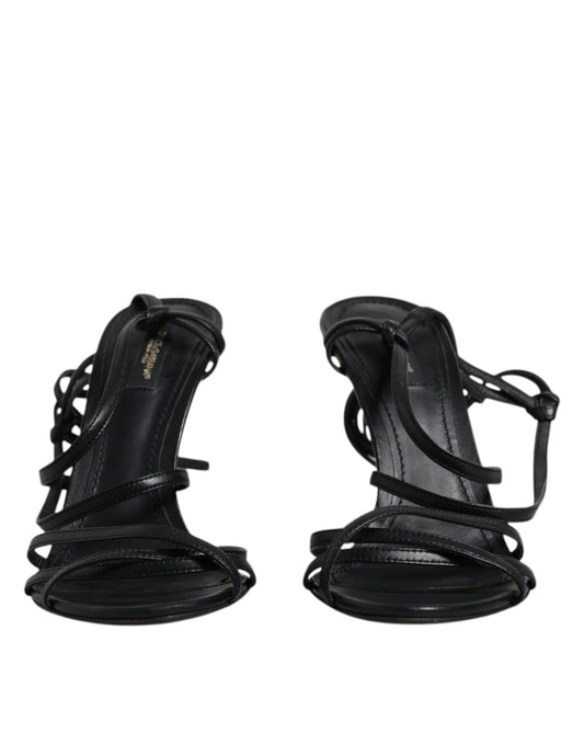 Dolce & Gabbana Black Leather High Heels Keira Sandals Shoes