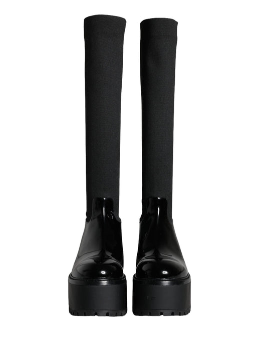 Dolce & Gabbana Black Leather Jersey Knee High Boots Shoes