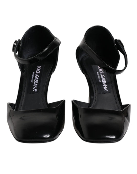 Dolce & Gabbana Black Leather Jackie Ankle Strap Sandals Shoes