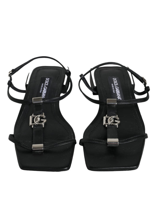 Dolce & Gabbana Black Leather Logo Ankle Strap Keira Sandals Shoes