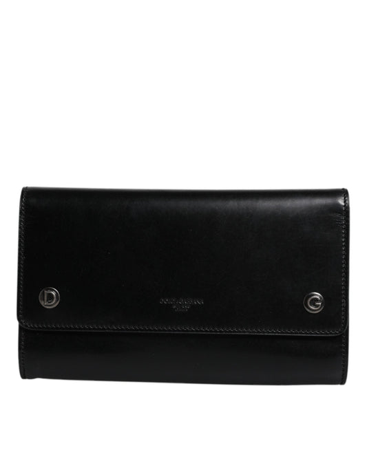 Dolce & Gabbana Black Leather Logo Embossed Lanyard Card Holder Wallet
