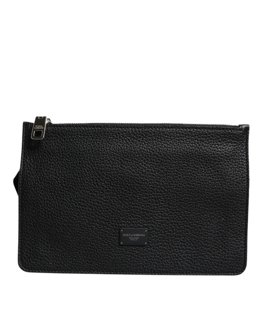 Dolce & Gabbana Black Leather LED Logo Wrist Strap Clutch Bag