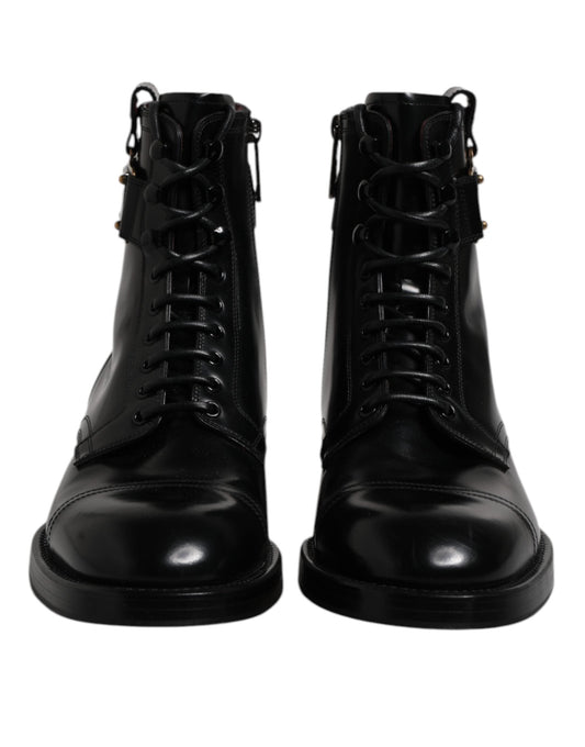 Dolce & Gabbana Black Leather Military Combat Boots Shoes