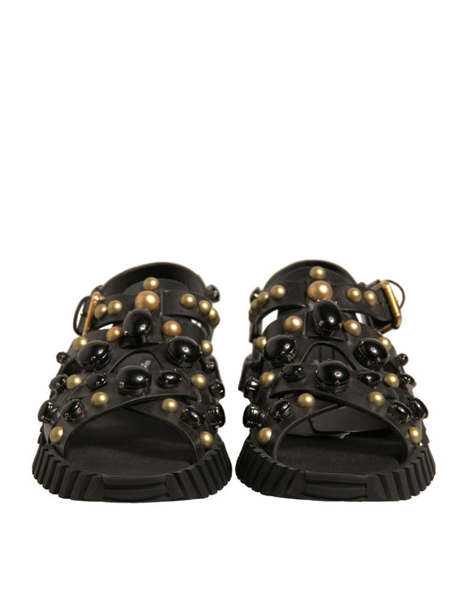 Dolce & Gabbana Black Leather Studded Slides Sandals Shoes