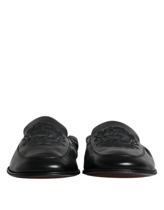 Dolce & Gabbana Black Logo Embroidered Leather Loafer Men Dress Shoes