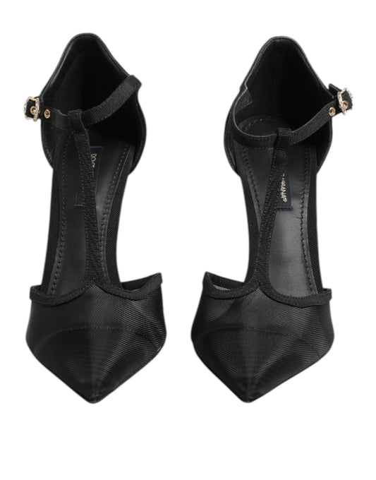 Dolce & Gabbana Black Mesh T-strap Stiletto High Heels Shoes
