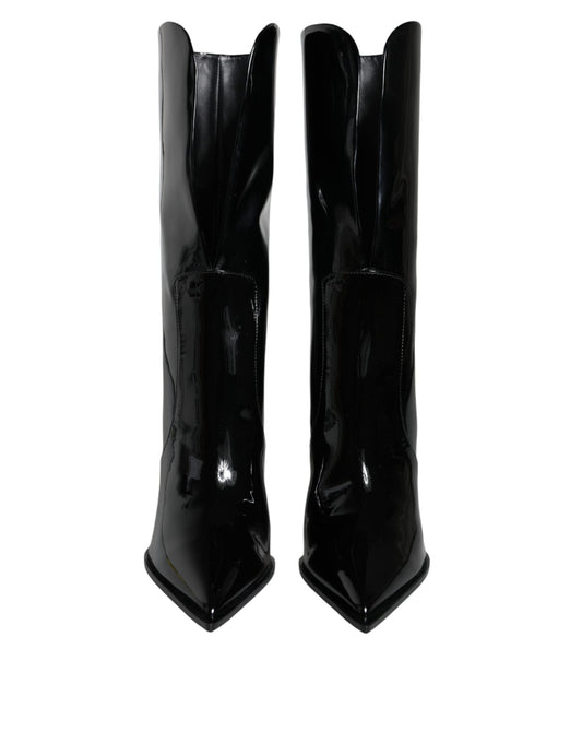 Dolce & Gabbana Black Patent Leather Mid Calf Boots Shoes