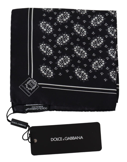 Dolce & Gabbana Black Patterned Square Scarf Silk Handkerchief