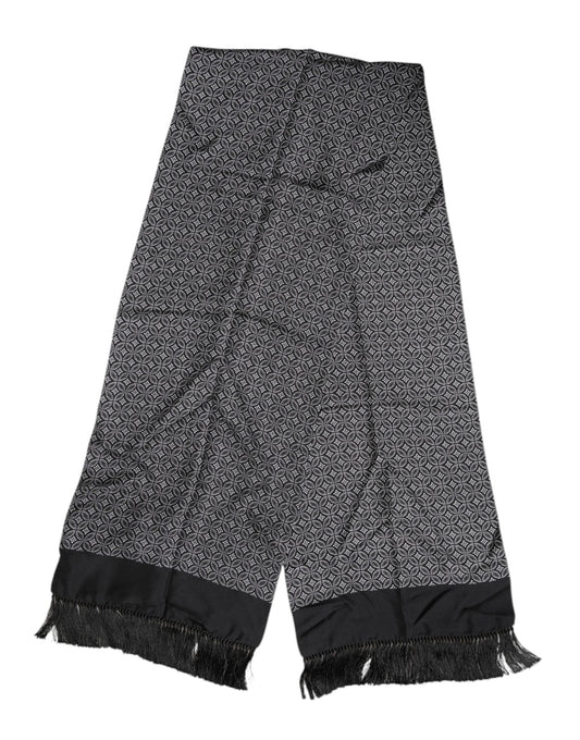 Dolce & Gabbana Black Patterned Fringes Men Foulard Scarf