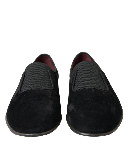 Dolce & Gabbana Black RUNWAY Velour AMALFI Loafers Shoes