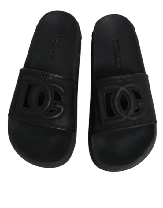 Dolce & Gabbana Black Rubber Slides Sandals Beachwear Shoes