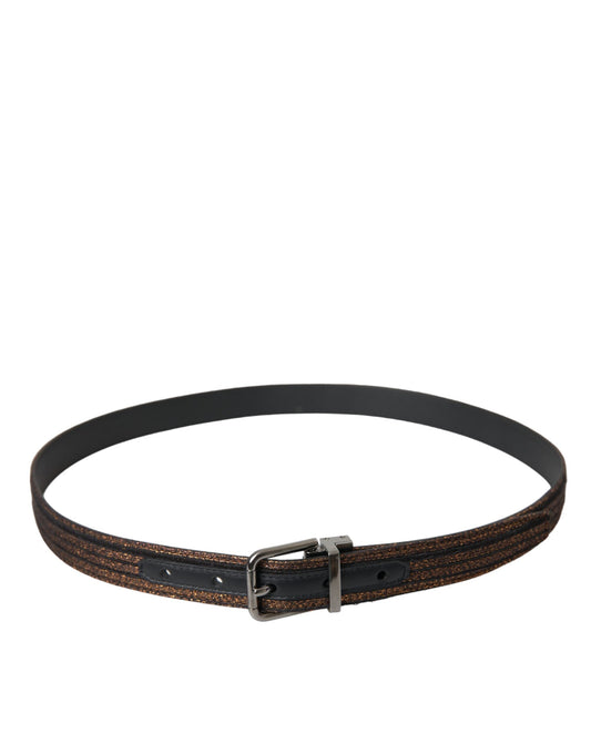 Dolce & Gabbana Gold Leather Jacquard Silver Metal Buckle Belt
