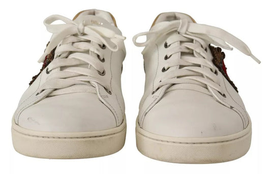 Dolce & Gabbana White Leather Heart Embellished Sneakers Shoes