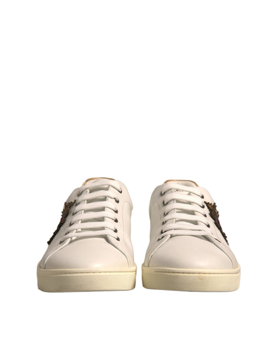 Dolce & Gabbana White Leather Heart Low Top Casual Sneakers Shoes