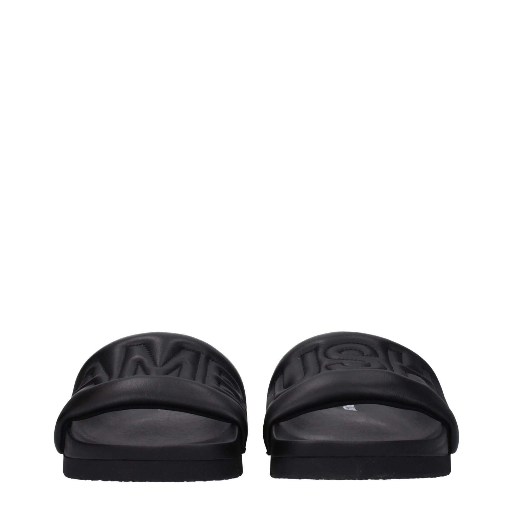 The product with MPN BMIC001LEA0011000 and code F79694 leather in black is a slippers and clogs designed by Ambush. It has features like front logo.