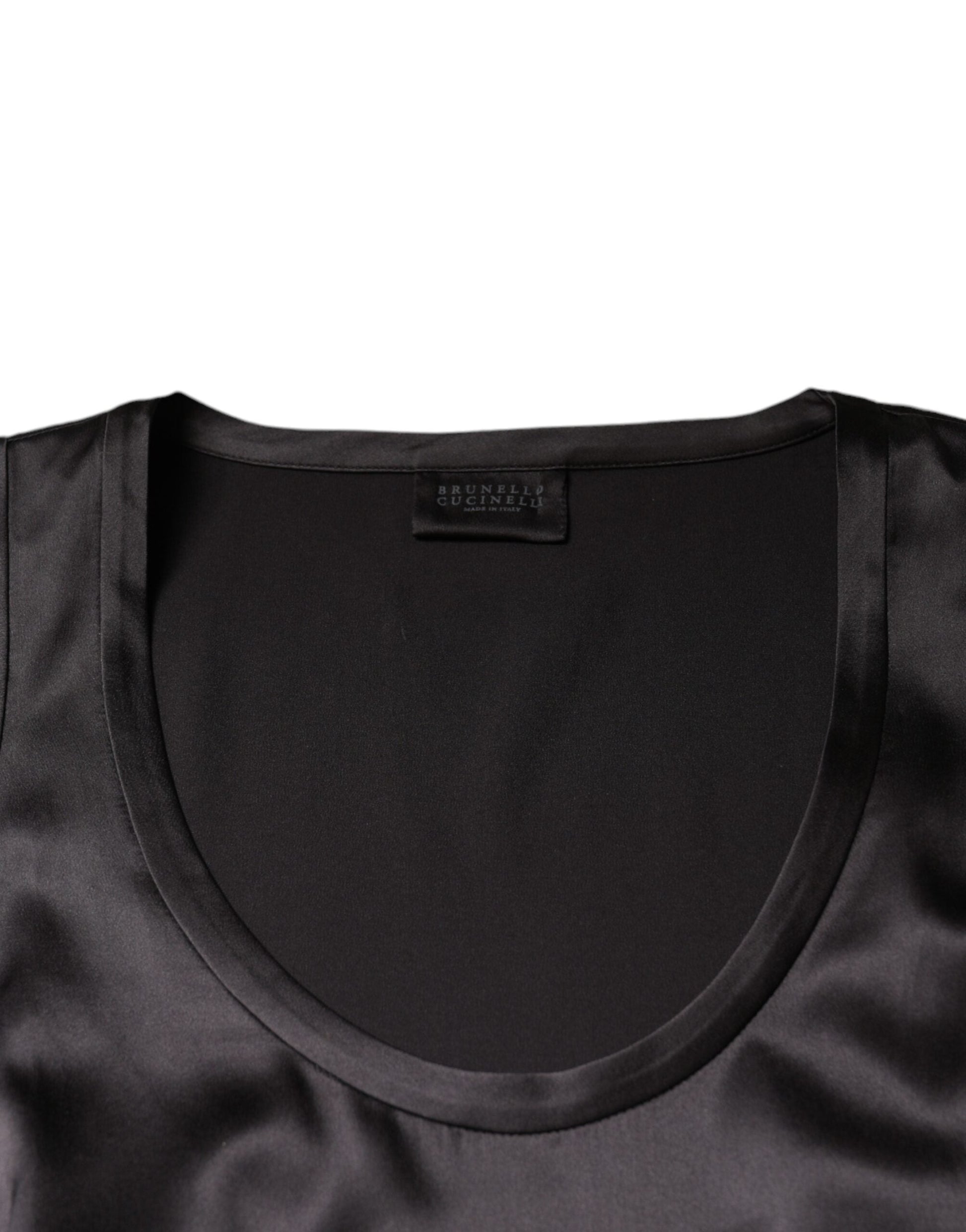 Brunello Cucinelli Black Silk Blend Sleeveless Tank Top