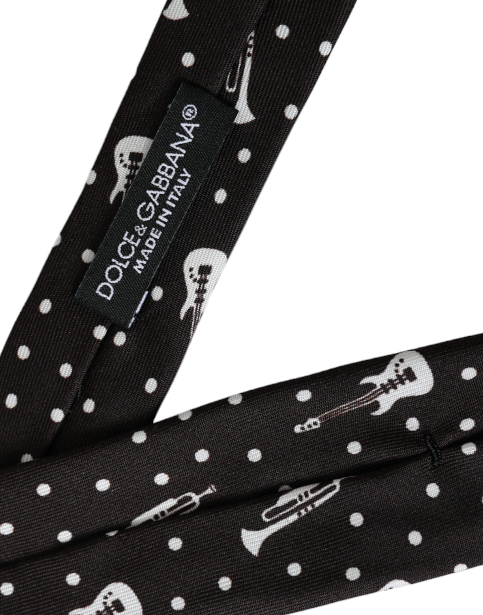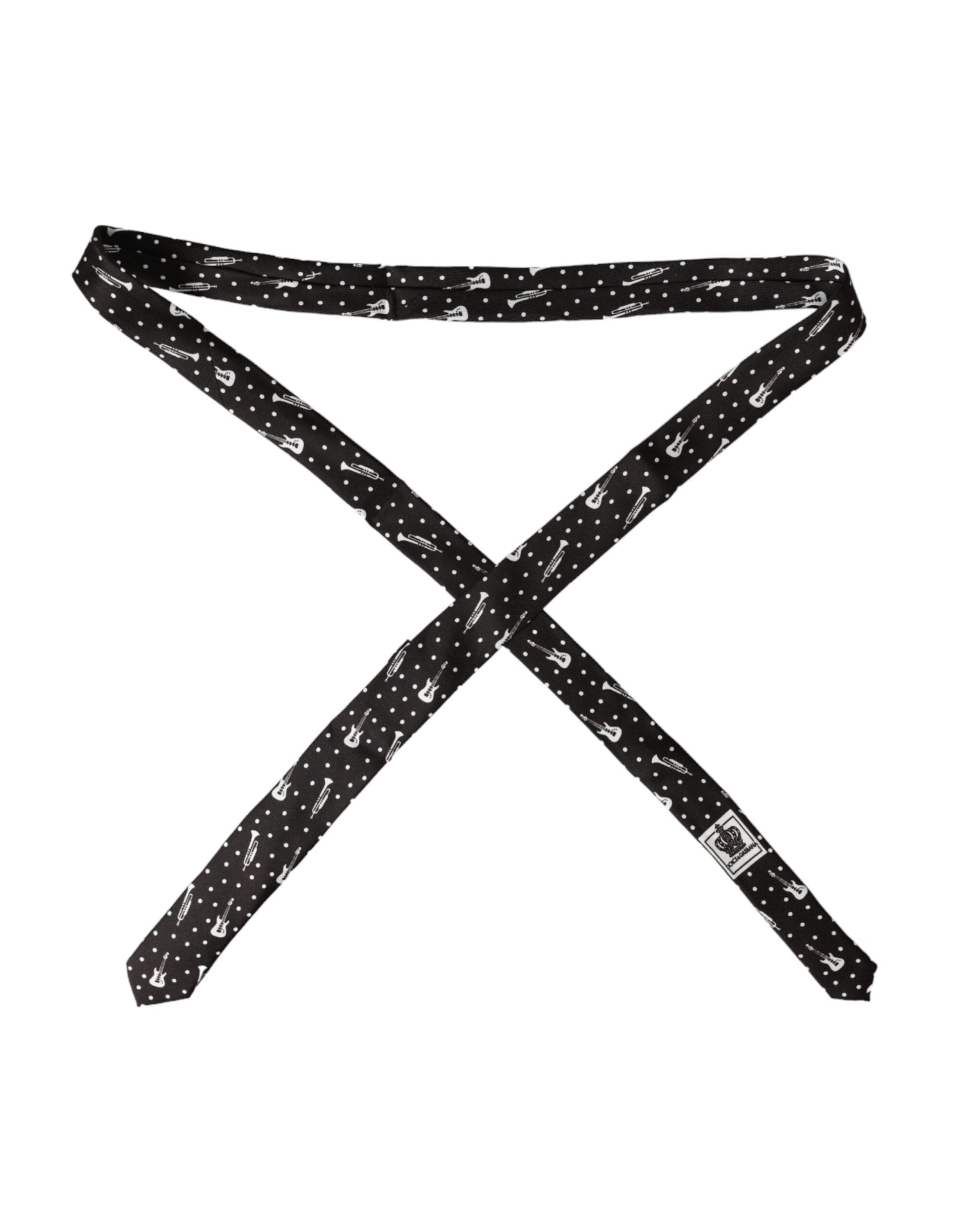 Dolce & Gabbana Black Guitar Print Silk Adjustable Tie