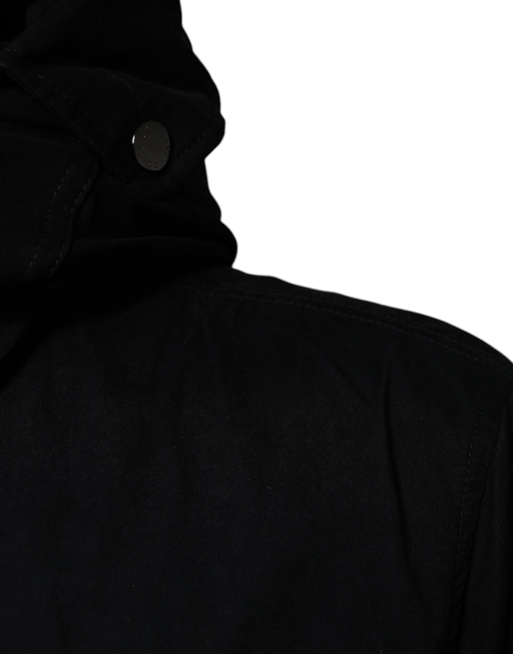 Dolce & Gabbana Black Hooded Parka Cotton Trench Coat Jacket