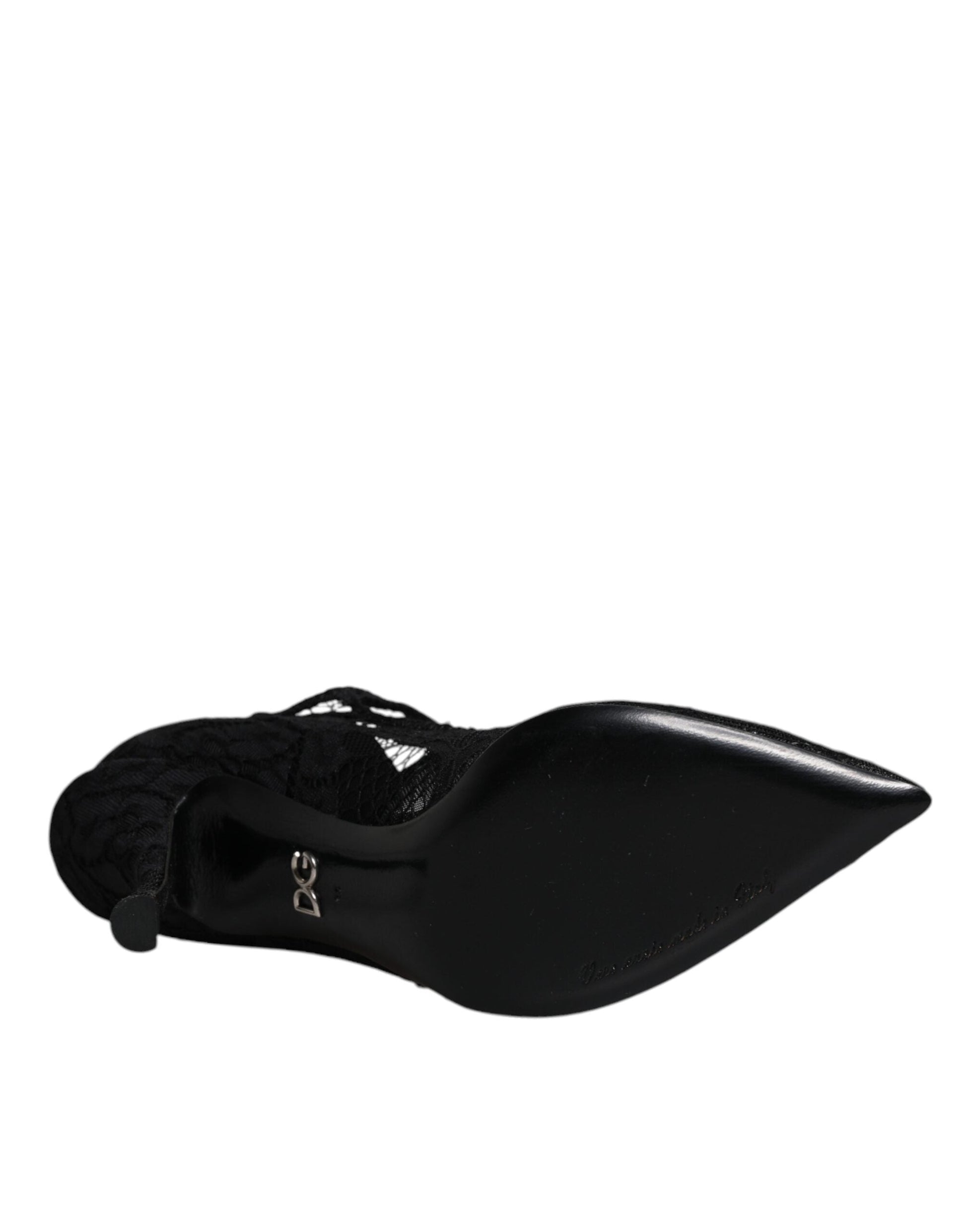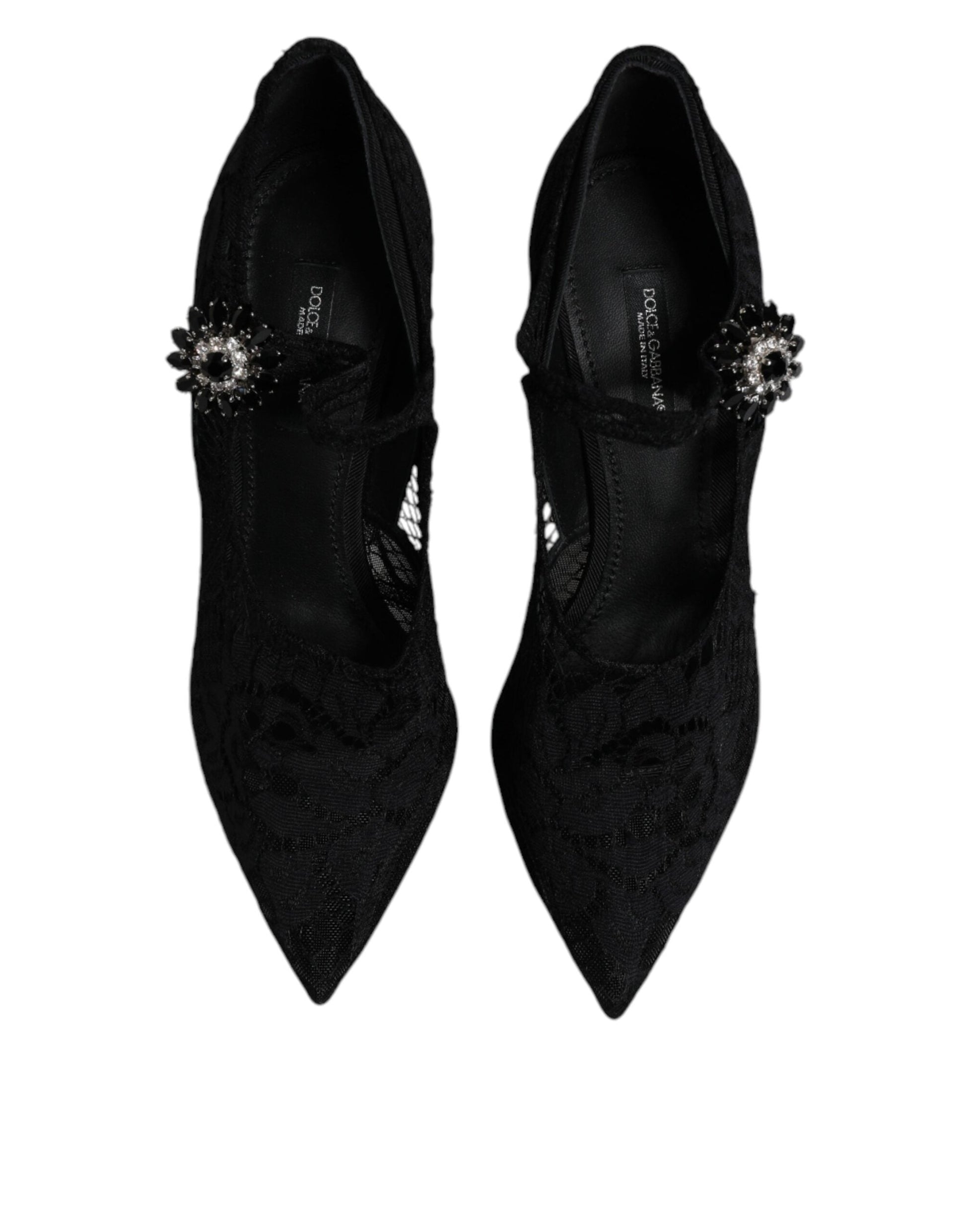 Dolce & Gabbana Black Lace Crystals Mary Jane Pumps Shoes