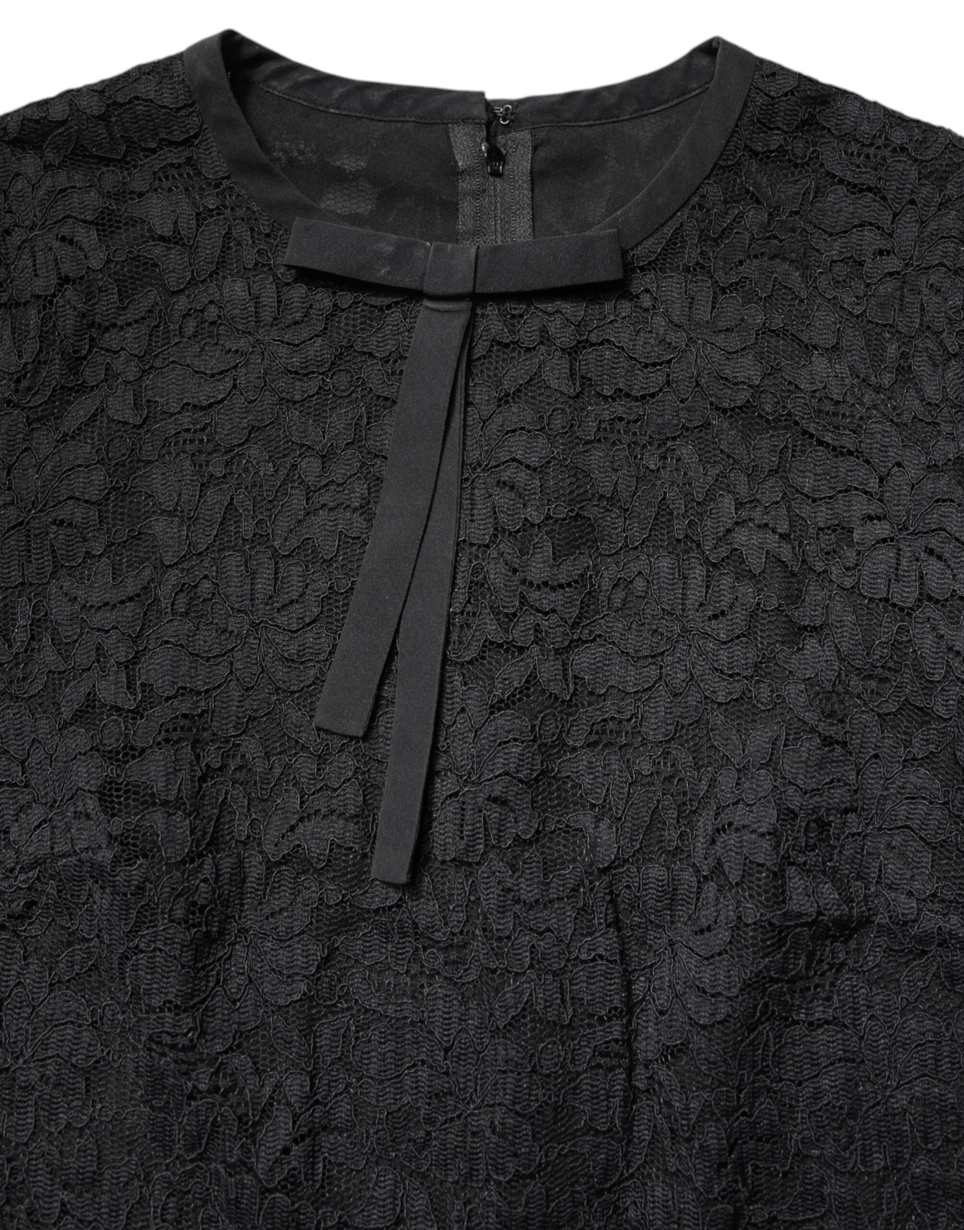 Dolce & Gabbana Black Lace STAFF Crew Neck Long Sleeves Top