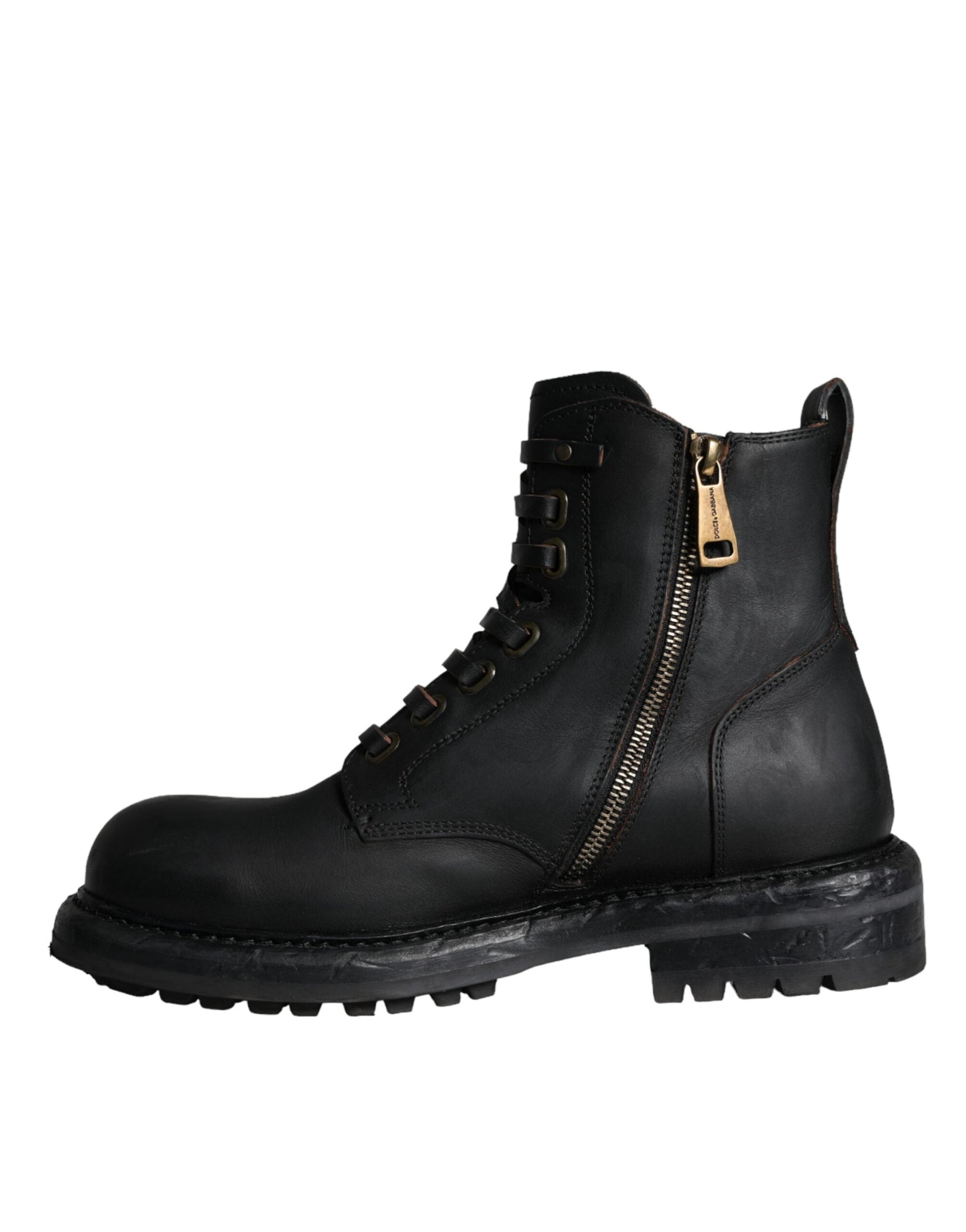 Dolce & Gabbana Black Lace Up Mid Calf Boots Men Shoes